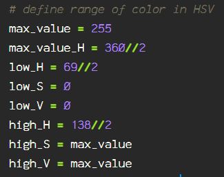 This can be finessed by initializing this process with custom kernels for the blurring process, and altering the threshold range for the image. I focused on the green in the image since there is predominantly green in the background of the image. To focus on other shades or colors, when using the cv2.inRange() function, you may have to filter the image twice, since the colors you may want to focus on are not necessarily next to each other on the HSV color wheel.
