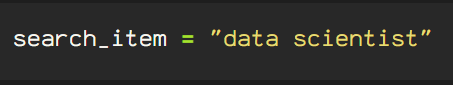 Once this code runs, the browser opens the webpage containing the results for your search. This should have sections such as “Jobs”, “People”, and “Posts”. First, you can define whether you are searching for jobs, people, or posts as the ‘target’ variable. Next, I assign the variable ‘button’ to the element’s link text, which is visible in the banner, but can be verified in the HTML.