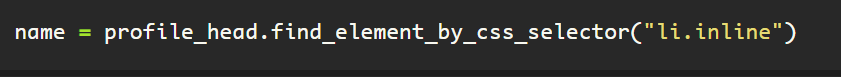 To convey this to the WebDriver, I create an instance called ‘profile_head’, finding it using the css selector using the ‘ul’ tag and the class ‘pv-top-card–list’.